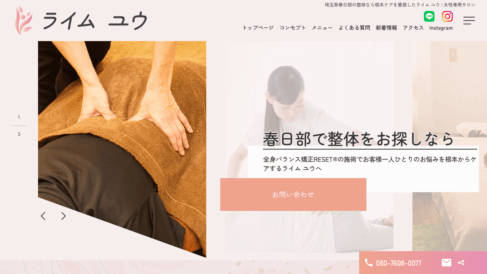 毎日の疲れや痛みを抱えながら過ごしている方に向けて、根本的なケアをご提案しております。肩や腰の重だるさ、姿勢の崩れなど、体に現れるさまざまなサインは日々の生活習慣や体のバランスの乱れから生じていることが多くあります。ライム ユウでは、そうした不調の背景にある原因へ丁寧にアプローチし、体の土台となる部分を整えることで、不調が起こりにくい状態へと導いていきます。全身バランス矯正RESET®という独自の手技を用いて、痛みを伴わない優しいタッチで体全体の調和を整えていきます。 体は本来、自らバランスを保とうとする力を持っていますが、長期間にわたる負担が続くと、その力だけでは対応しきれなくなります。施術では固まった筋肉をほぐし、骨格の位置を自然な状態へと導くことで、体が持つ本来の調整力を引き出していきます。認定を受けた専門スタッフが施術前に丁寧な検査を行い、一人ひとりの体の状態を把握したうえで、最適なアプローチ方法をご提案いたします。施術後には体の軽さや動きやすさを感じていただきやすく、継続的なケアを通じて良い状態を体に定着させていくことが可能です。