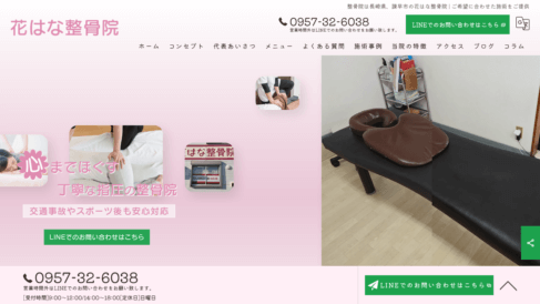 花はな整骨院では、リラックスして過ごせるあたたかい空間づくりを心がけており、アットホームな雰囲気の整骨院で安心してご来院いただけます。身体の構造に精通したスタッフが丁寧にヒアリングし、お客様の不安に寄り添います。日常生活の中でふと覚える身体の違和感は、そのままにせずに早めの対応を心がけることが大切です。一人ひとりの状態に寄り添い、丁寧なヒアリングを通じて、整骨院としてそれぞれに適した無理のない施術計画を諫早市にてご提案いたします。リラックスできる穏やかな空間づくりを行っているため、初めての方でも緊張せずに過ごせる環境です。些細なことでも遠慮せずにご相談ください。 肩こりやぎっくり腰などのお困りごとから、日常で抱く身体の小さな違和感まで丁寧に対応いたします。こわばった筋肉をほぐして、動きやすい身体を目指すピンポイントの指圧をご提供しており、お悩みの箇所に的確にアプローチいたします。ご希望に合わせて施術内容を調整しているため、もみ返しが不安な方や刺激に敏感な方も安心してお任せいただけます。対話を大切にしながら、今の身体が必要としている適切な強さで効率よく施術いたしますので、ぜひお立ち寄りください。お子様からお年寄りまで安心してお任せいただける体制を整えておりますので、急なトラブルから日常的に抱いている身体の違和感までお気軽にお問い合わせください。